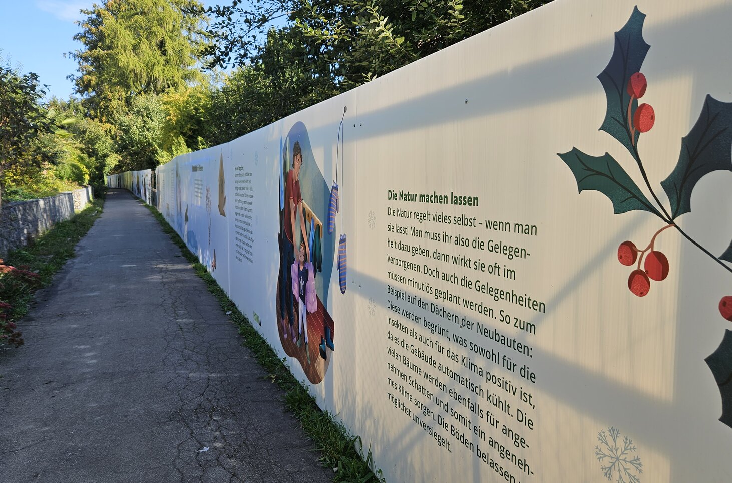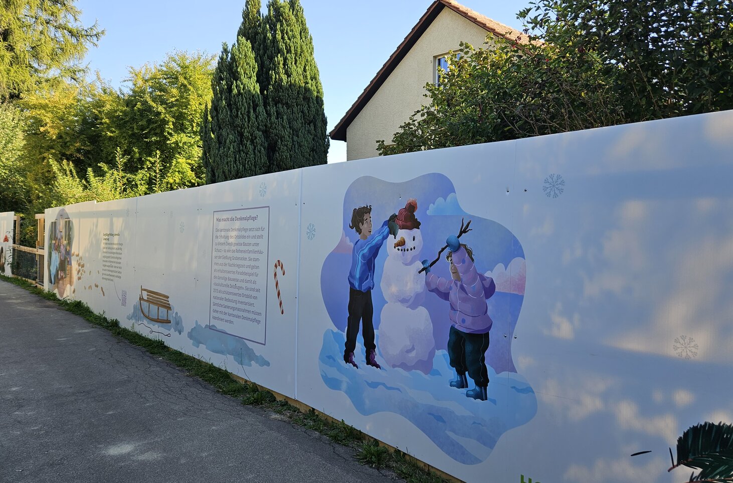 Entlang des Kirchwegs bei der Siedlung Grabenacker steht nun unsere wunderschöne Bauwand mit allerlei Informationen. Ein Blick darauf lohnt sich - nicht nur für die Bewohner/innen der Siedlung Grabenacker