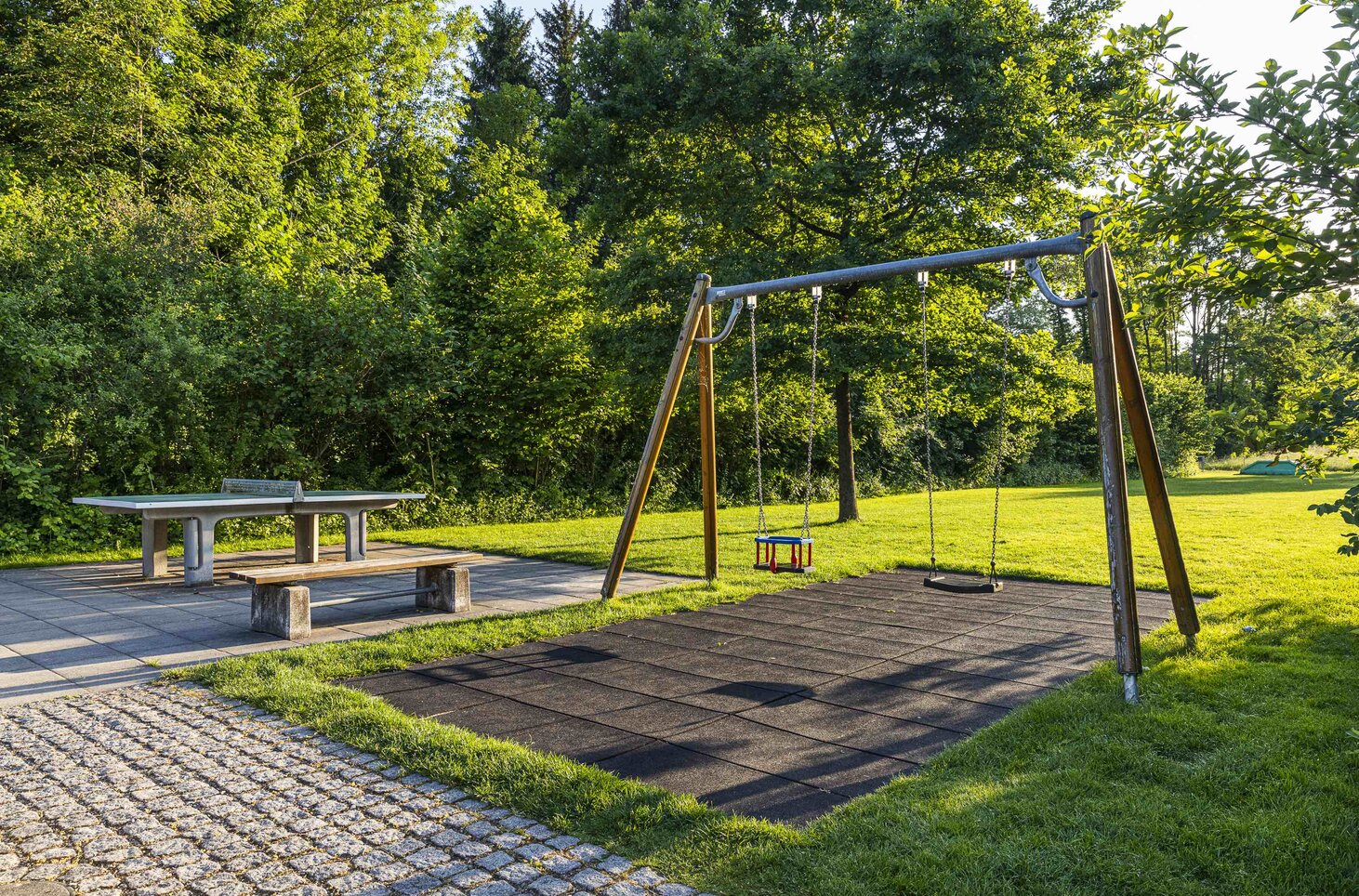 Der alte Spielplatz in der HGW-Siedlung Neftenbach musste erneuert werden. Statt einfach neue Geräte zu bestellen, bezog die HGW die Bewohner:innen ein. Ein Fragebogen machte den Anfang – mehr als die Hälfte aller Haushalte nahm teil. Die Wünsche waren vielfältig: Besonders gefragt waren eine grosse Spielwiese, Schaukeln und eine überdachte Sitzgelegenheit.